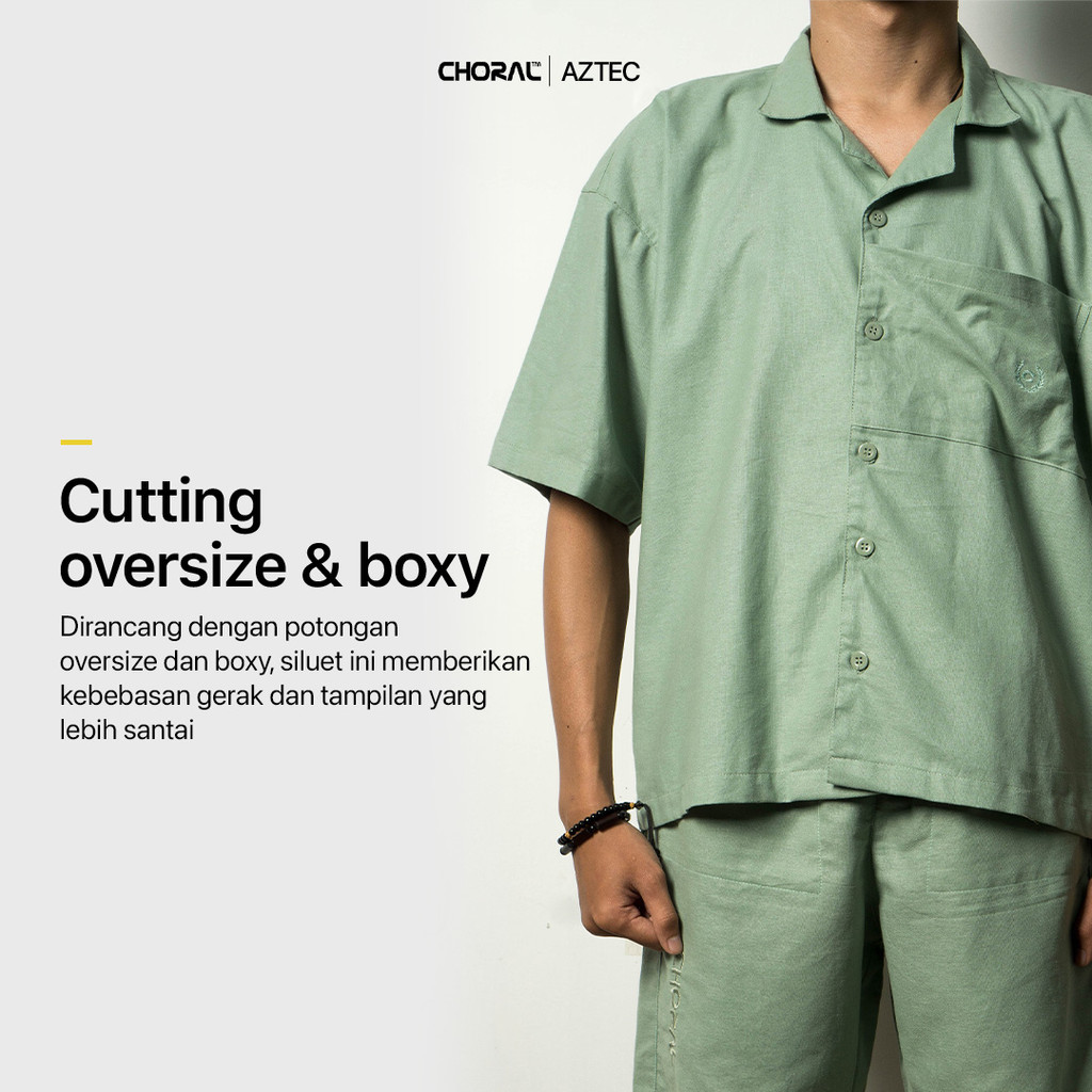 • Kemeja dengan kerah terbuka dengan ukuran relaxed fit